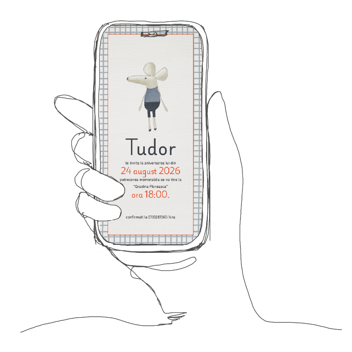 Vei primi invitația în format digital (JPG/PNG pentru poze, PDF pentru print, GIF pentru animate, în funcție de model) direct pe email. Gata optimizată pentru WhatsApp, Facebook, Instagram!