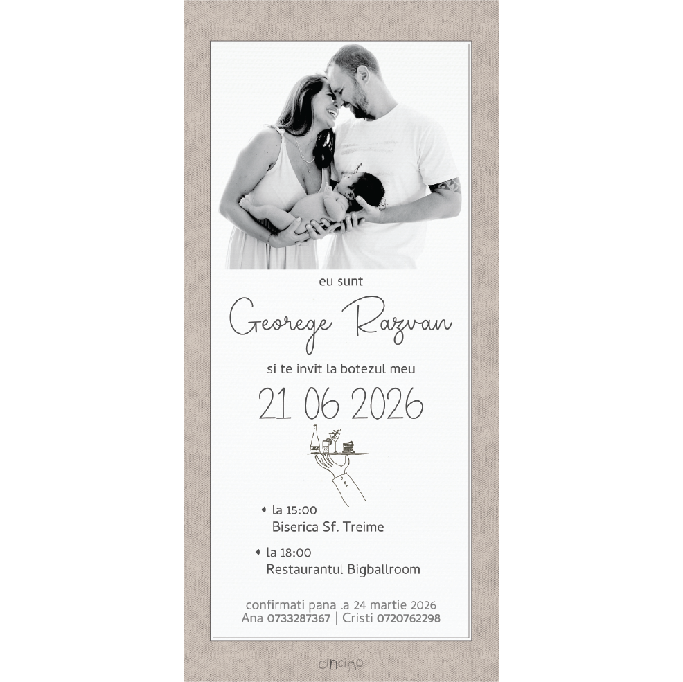 Invitația ta personalizată va fi gata în maxim 1 zi lucrătoare. Comenzile plasate până la ora 12:00 sunt livrate în aceeași zi!