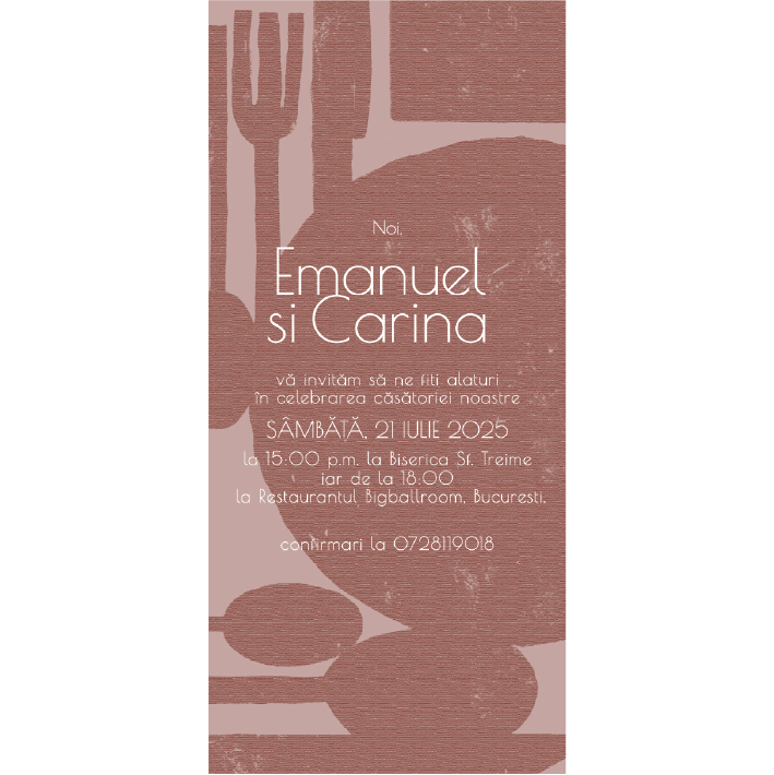 Invitația ta personalizată va fi gata în maxim 1 zi lucrătoare. Comenzile plasate până la ora 12:00 sunt livrate în aceeași zi!