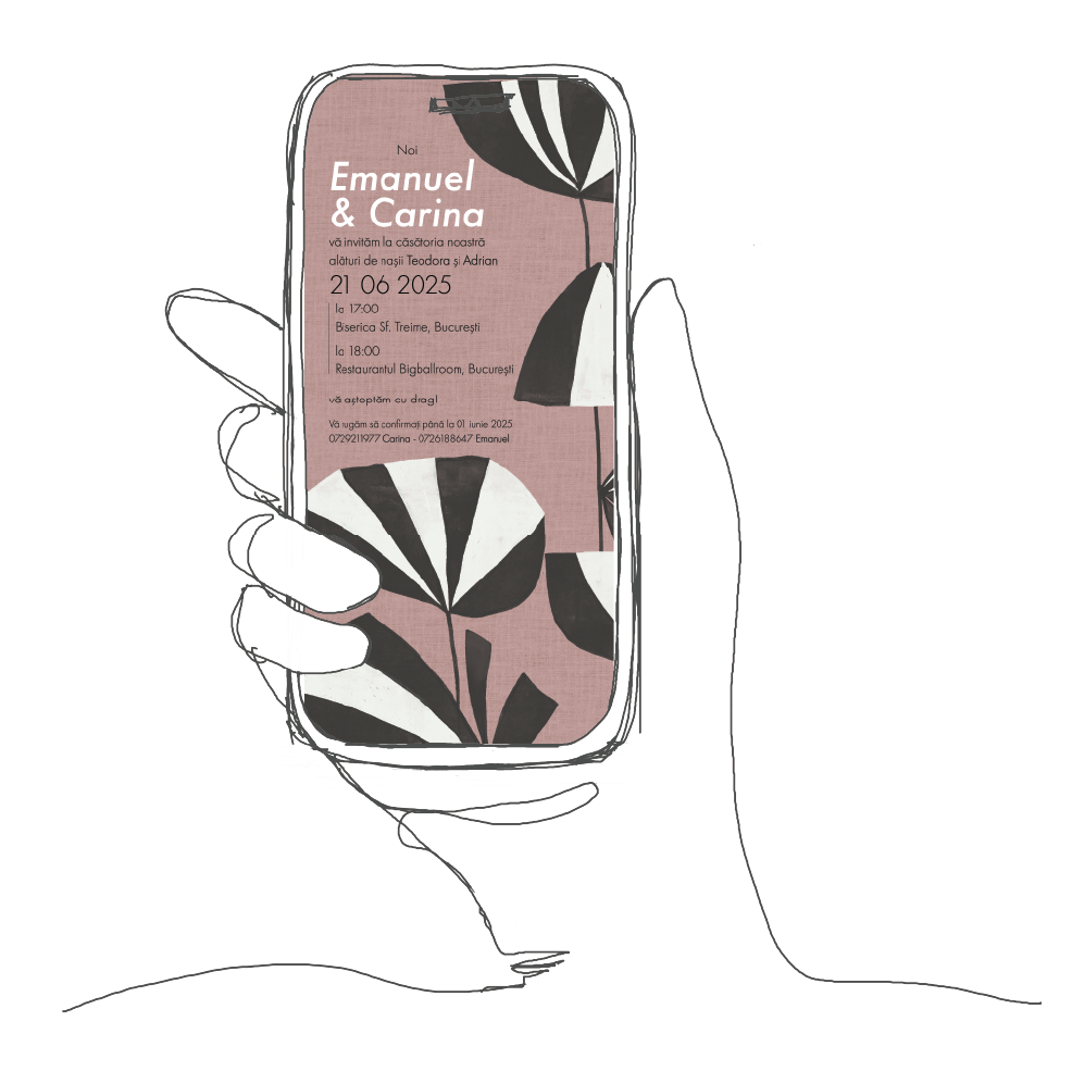 Vei primi invitația în format digital (JPG/PNG pentru poze, PDF pentru print, GIF pentru animate, în funcție de model) direct pe email. Gata optimizată pentru WhatsApp, Facebook, Instagram!